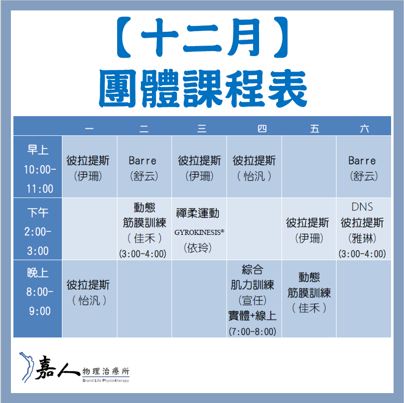12 月班表與團體課程表及團體課程表當然也有點不一樣囉~